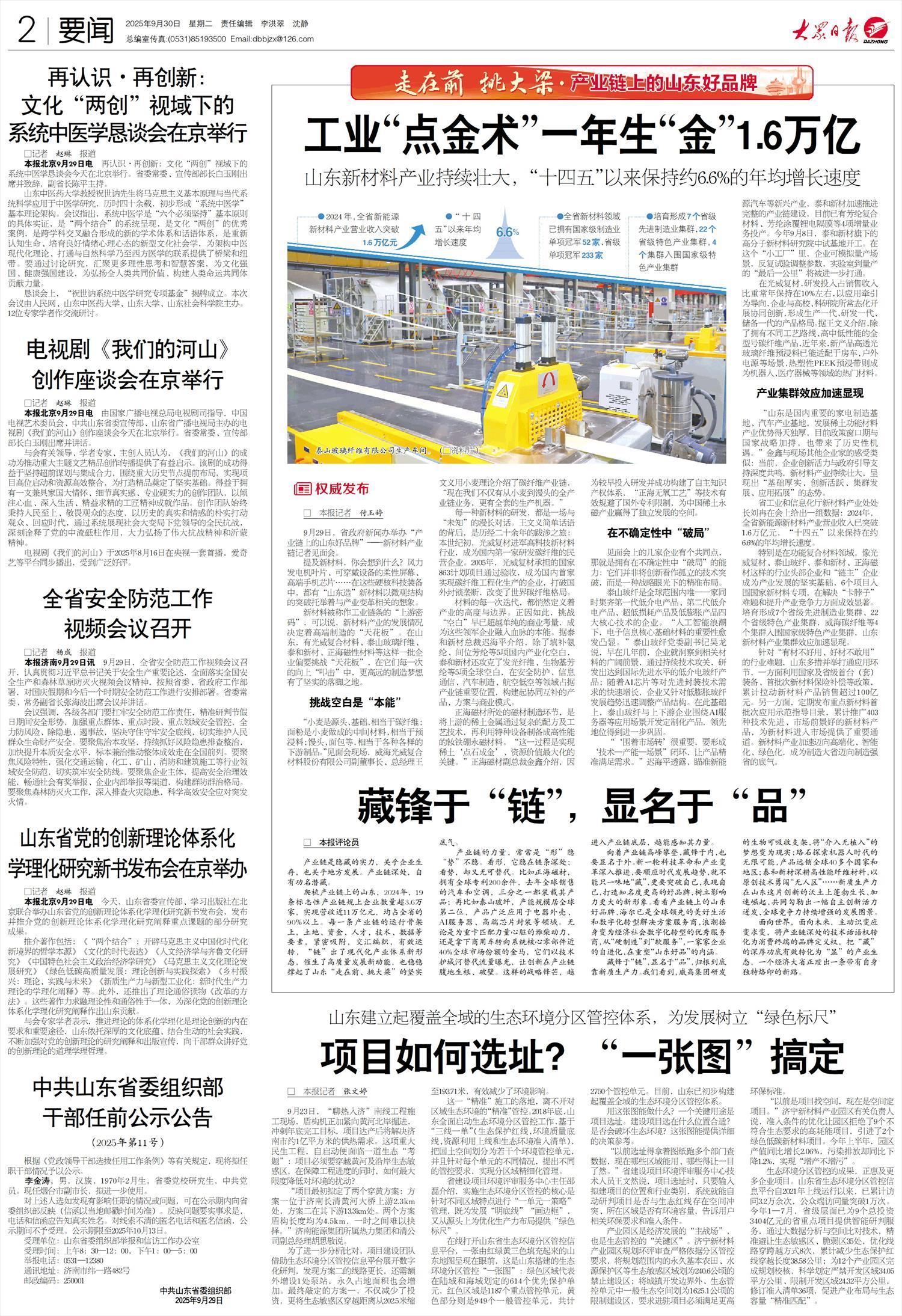 9月29日,省政府新聞辦舉辦“產業鏈上的山東好品牌”——新材料產業鏈記者見面會。