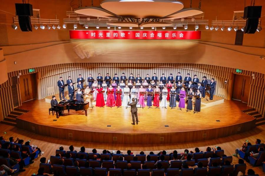 9月29日晚,市工人文化宮音樂廳里燈光璀璨、座無虛席,由中央歌劇院帶來的“時光里的歌”國慶合唱音樂會在這里舉行。數百名一線職工、市民代表、各界人士歡聚一堂,在澎湃激昂的旋律中慶祝中華人民共和國成立76周年。