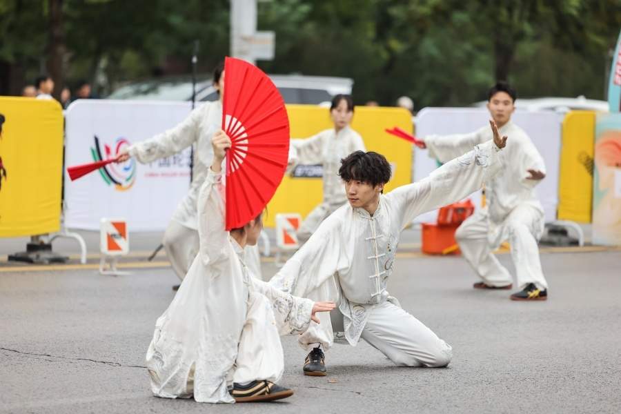 賽前的開幕式節(jié)目展演上,馳騁國內(nèi)外輪滑賽場、先后榮獲多次國際冠軍的自由輪滑健將王鼎郁馨表演了精彩輪滑節(jié)目《喜》。隨后,北京的阿布溜溜代表隊(duì)帶來的輪滑節(jié)目《洗牌》,隊(duì)員們以靈動(dòng)的身姿、流暢的滑行,重新“洗牌”了觀眾對速度的認(rèn)知。山東師范大學(xué)代表隊(duì)帶來的節(jié)目《太極扇表演》,一招一式,剛?cè)岵?jì);一起一落,如行云流水。優(yōu)秀輪滑選手秦雨晴帶來的輪滑節(jié)目《魔童降世》,展現(xiàn)出哪吒無畏無懼、奮勇向前的精神風(fēng)貌。